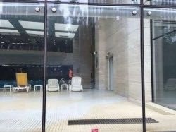 左:北京亮马橋外交官公寓入口広場 右:トレーニングルーム窓ガラス
